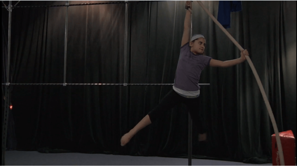 ‘Conversation is stippled with moments of “goofball energy,” as staff member Michelle Higgins puts it, as well as discussion of circus acts that the members have seen. A clear commitment to honing their craft based on observation and practice is shared among all the students. Circus is in their blood. One of them, Brendan, casually pulls a juggling club into the air with his foot while chatting.’