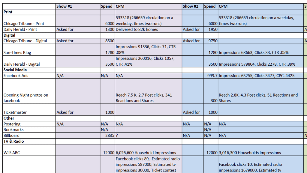 An example of my expertise in developing and executing comprehensive marketing strategy. This integrated marketing plan demonstrates a diverse range of strategies and initiatives while keeping consistent messaging and branding across campaign types. Real life examples from multiple productions are captured here.